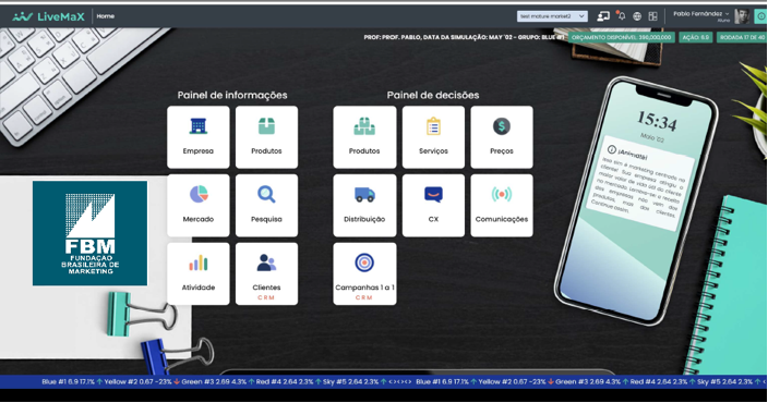 A FBM – Fundação Brasileira de Marketing tem o prazer de anunciar a parceria com a Marketing Tech, desenvolvedora do primeiro simulador de estratégias de marketing totalmente pensado para estudantes e empresas do século XXI, o LiveMax Simulator. Este inovador simulador foi desenvolvido pelo renomado especialista em marketing, Dr. Pablo Fernández, e o curso será disponibilizado em formatos de presencial e online para instituições de ensino superior e programas in company, oferecidos pela Fundação e operacionalizados pela Amazonascap Educação.