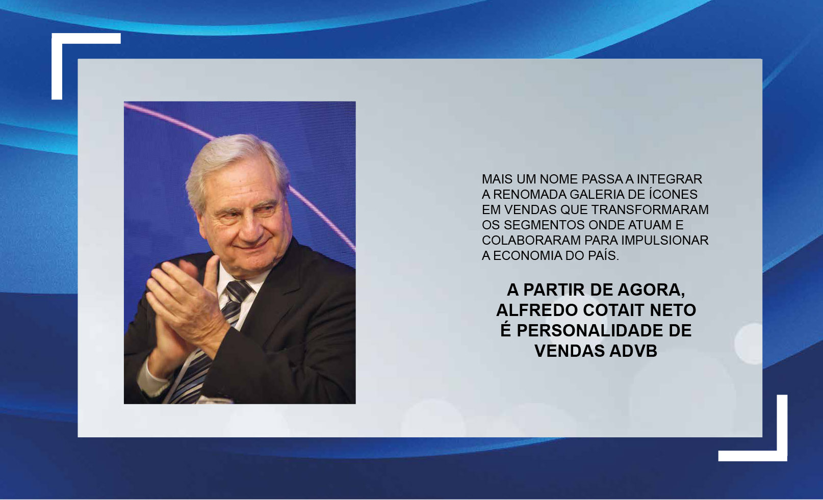 “A escolha de Alfredo Cotait como Personalidade Nacional de Vendas da ADVB 2023 tem o sentido de valorizar sua dedicação às atividades comerciais que tanto contribuem para o desenvolvimento da economia nacional”, Latif Abrão Jr., presidente do Conselho da ADVB.
