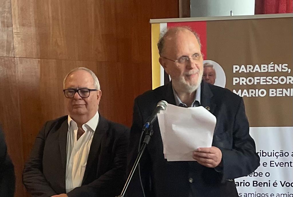 “É com imensa alegria e gratidão que homenageio o estimado Professor Emérito Mario Beni, influente na educação e no desenvolvimento do turismo. Sua jornada e contribuições no campo do turismo formaram gerações de profissionais e, também, deixaram uma marca que jamais será apagada na indústria como um todo.