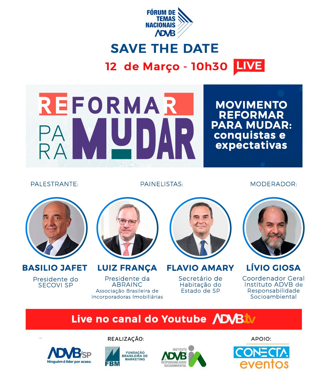 ADVB focaliza Movimento Reformar para Mudar, em live na 6ª feira
